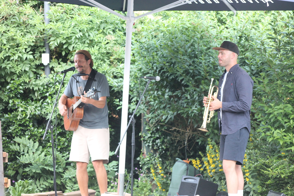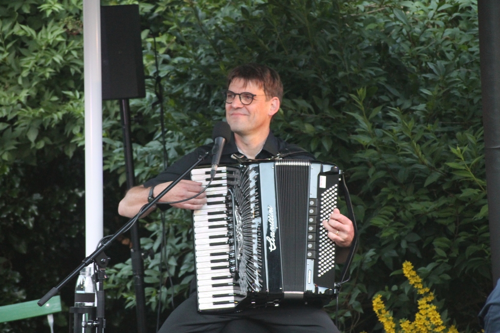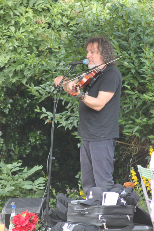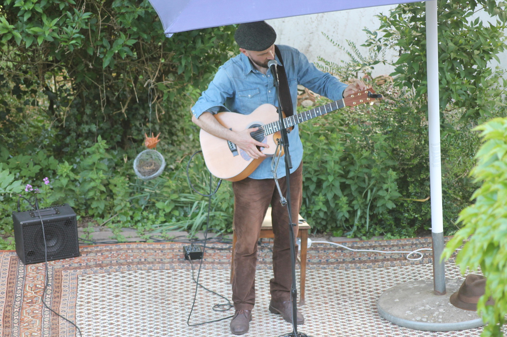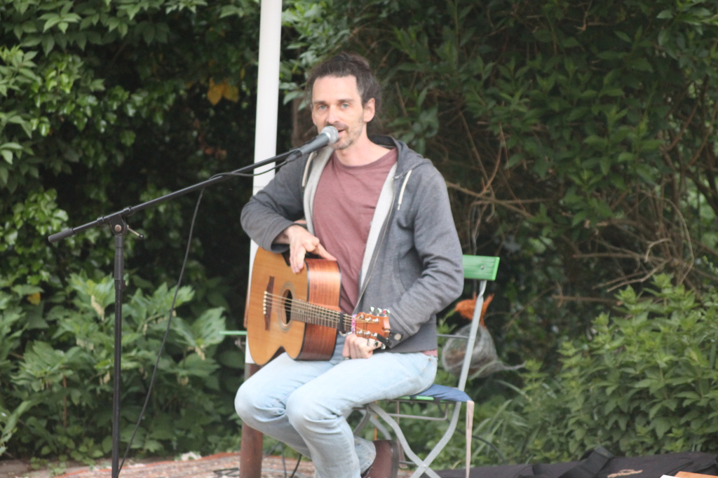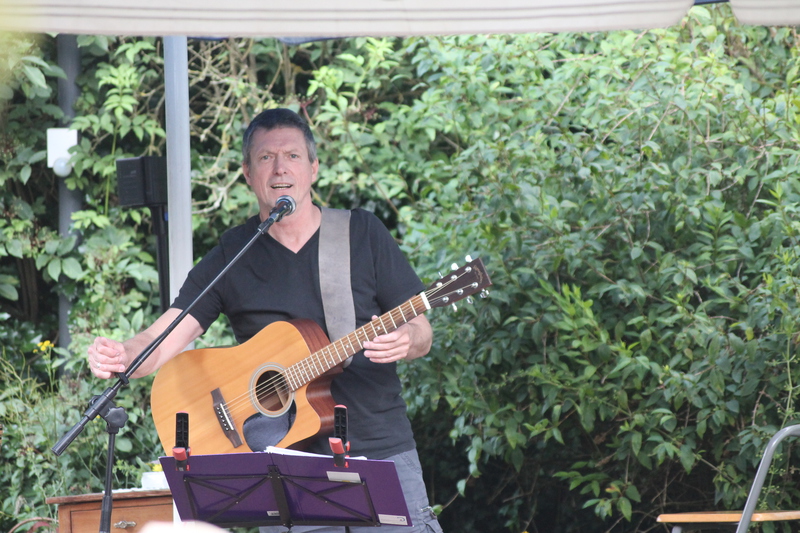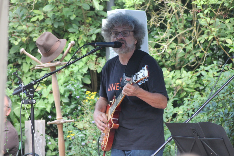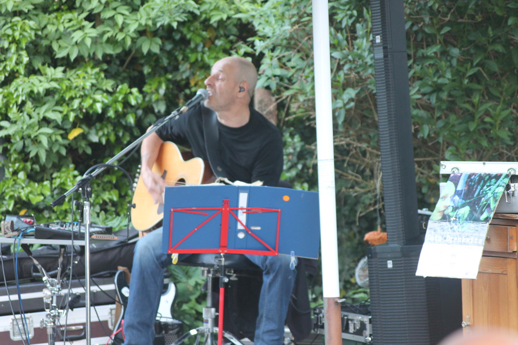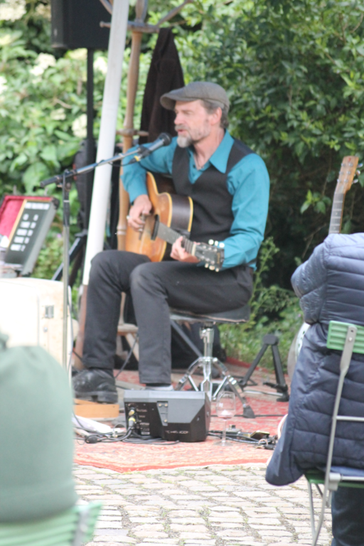 Wetter wie bei den großen Festivals. Die Fans unter den Schirmen zusammengerückt. Er fing an zu spielen, der Regen hörte auf. Pit versorgte die Maßen mit wunderschönen Interpretationen großer
