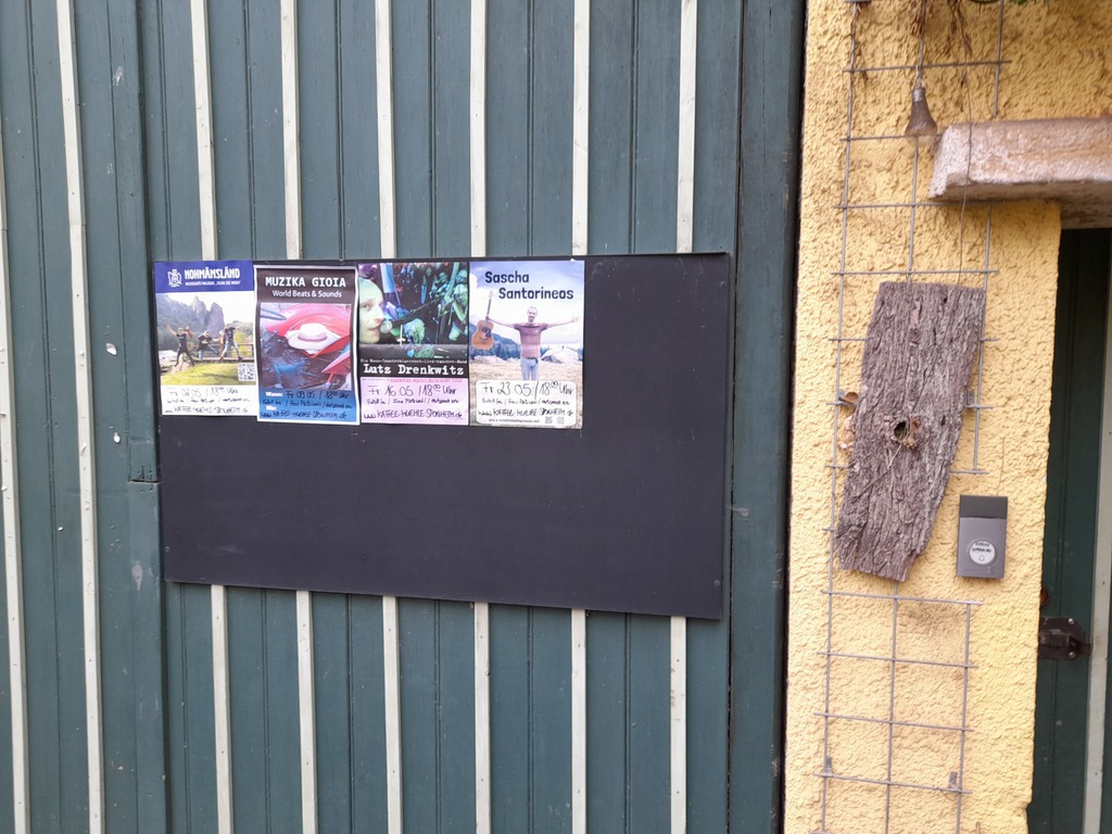 Die erste Premiere im Kaffee Mühle ist geglückt. Viele eigene Stücke ein paar Coversongs, sehr schöne Stimmung. Sogar ein Klavier war dabei. Außerdem mindestens noch 5 weitere Instrumente. Ela und